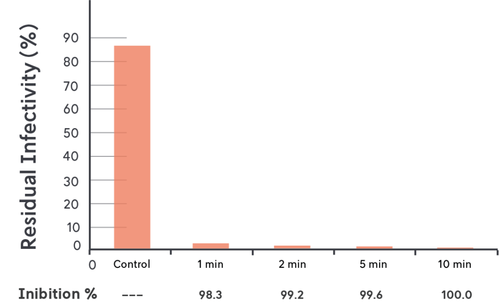 Residual virus infectivity tested according to a modified ISO 20743 method (Sendai virus), ISO 20743:2013, Textiles Determination of antibacterial activity of textile products and ISO 18184:2019 Textile Determination of antiviral activity of textile products.